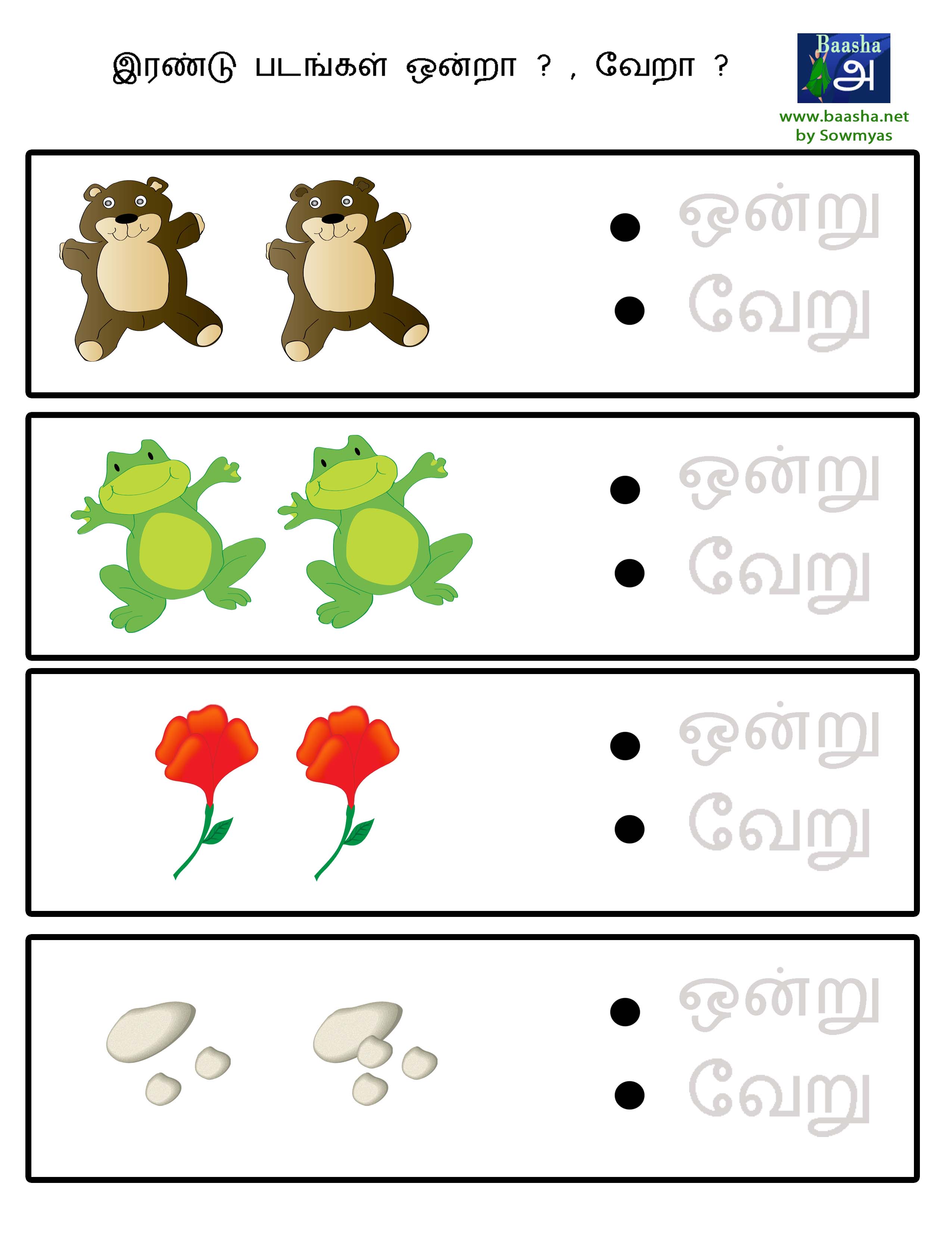 Here are some activities to understand the concept of Same/Different. Click here to see examples. If you are ready, click on the image to go to the respective activity.
